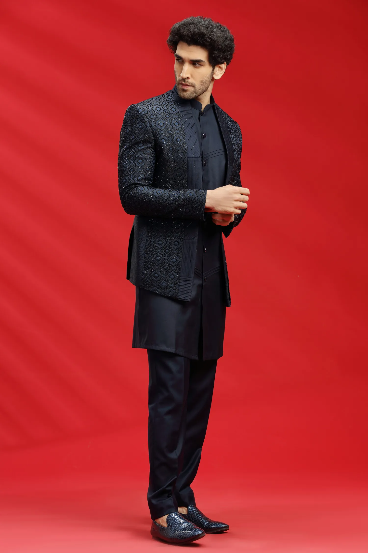 Silk Indowestern Achkan Kurta Pyjama
