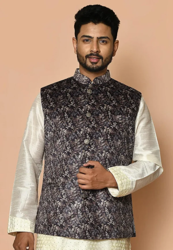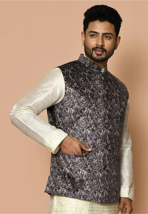 - This Sleeveless and Chinese Collar attire is Enhanced with Buttons and Digital Print