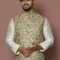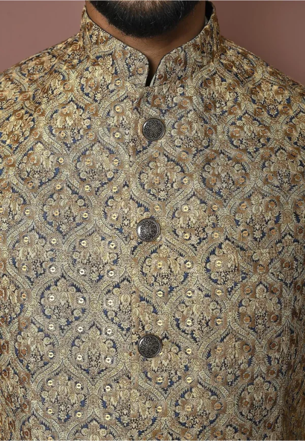 Embroidered Cotton Nehru Jacket in Beige and Blue