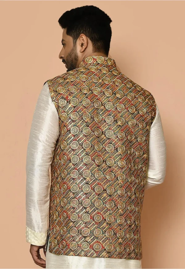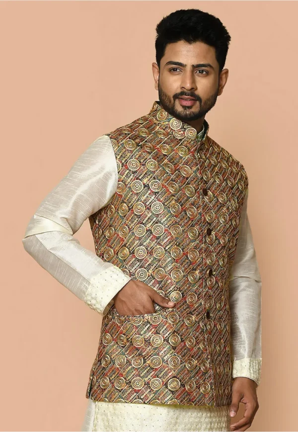 Embroidered Cotton Nehru Jacket in Multicolor