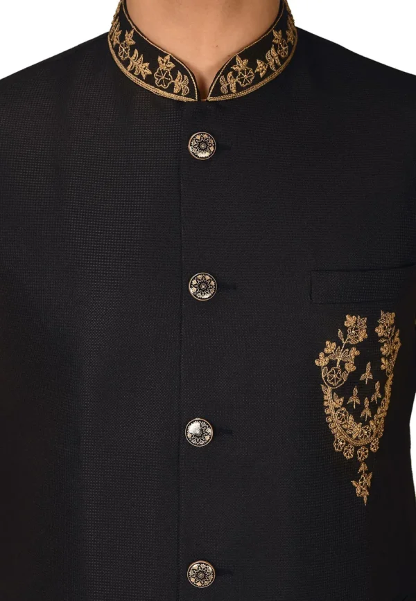 • This Readymade Sleeveless attire is Enhanced with Buttons, Resham, Bullion and Beads Work and is Crafted in Chinese Collar Neck