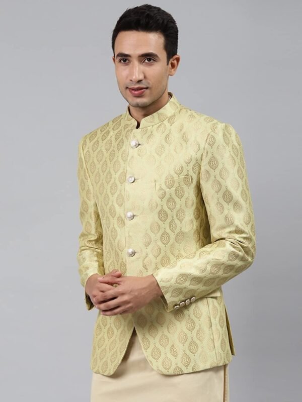 - Green self design bandhgala blazer