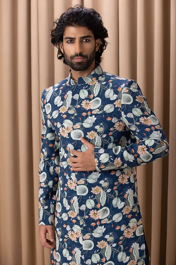 Navy Printed & Hand Painted Indowestern Jacket Set
