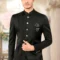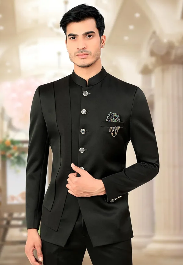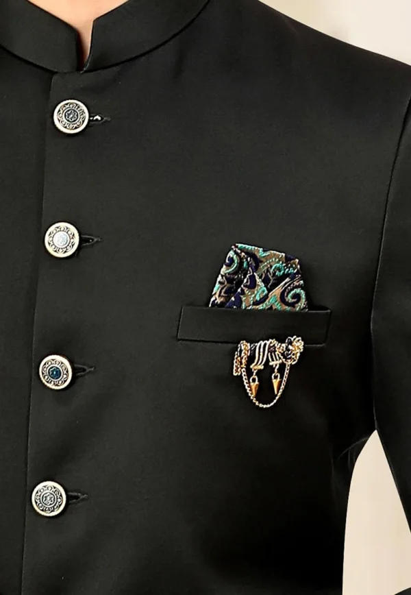 Solid Color Terry Rayon and Satin Jodhpuri Jacket in Black