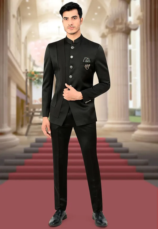 Solid Color Polyester Viscose Jodhpuri Suit in Black