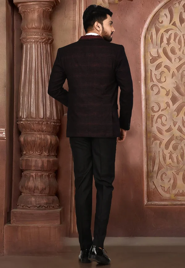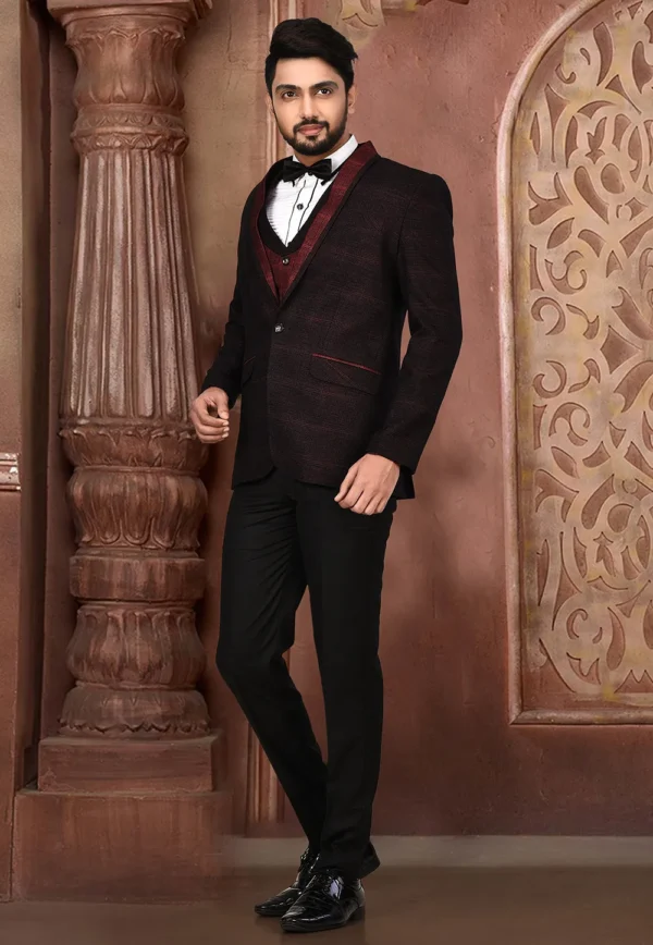 - Readymade Acrylic Cotton Tuxedo in Maroon and Black